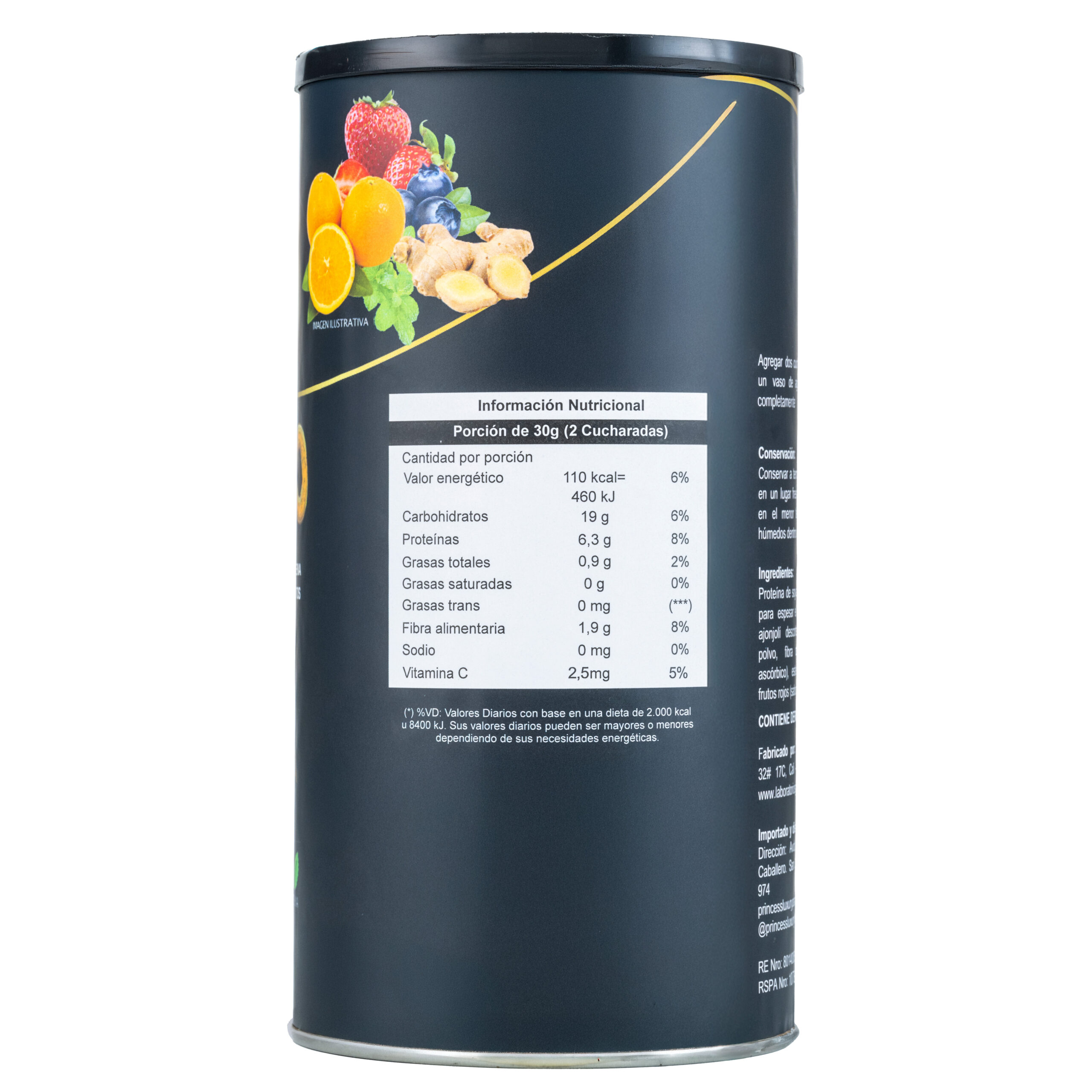 Alimento en polvo a base de proteína de soya con avena, ajonjolí, glucomanano, fibra de manzana y vitamina c.
